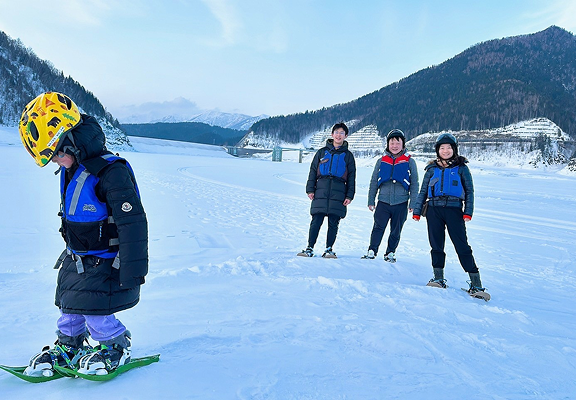 広い雪原をのんびり散策できるスノーシューをご用意。